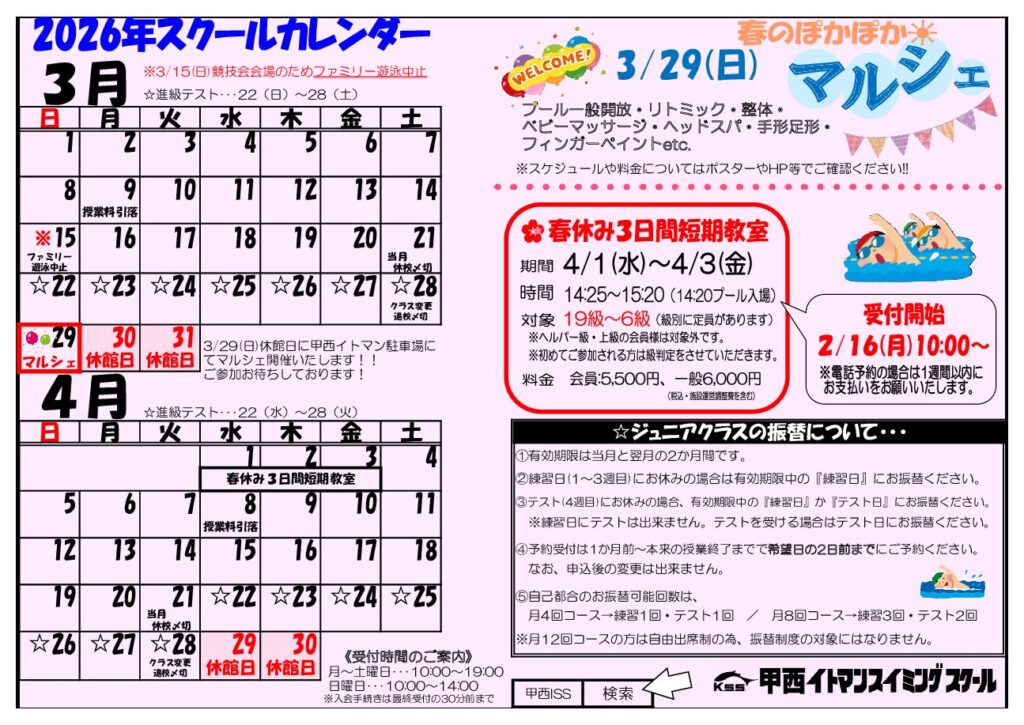 | 休館日 | 月末29・30・31日 (正月・GW・お盆休みは変更する場合がございますのでカレンダーでご確認ください) |