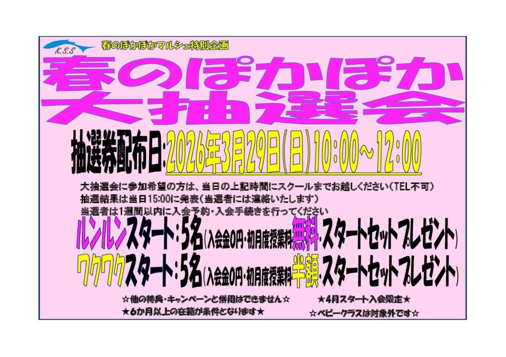 入会希望の方は空き次第のご案内となります。
