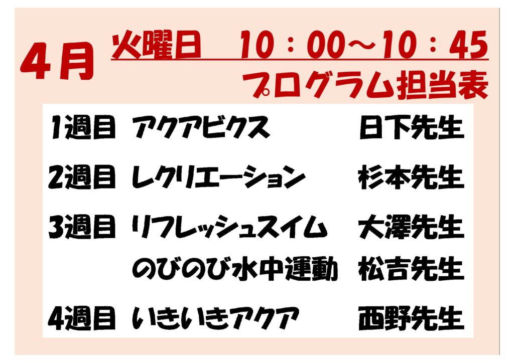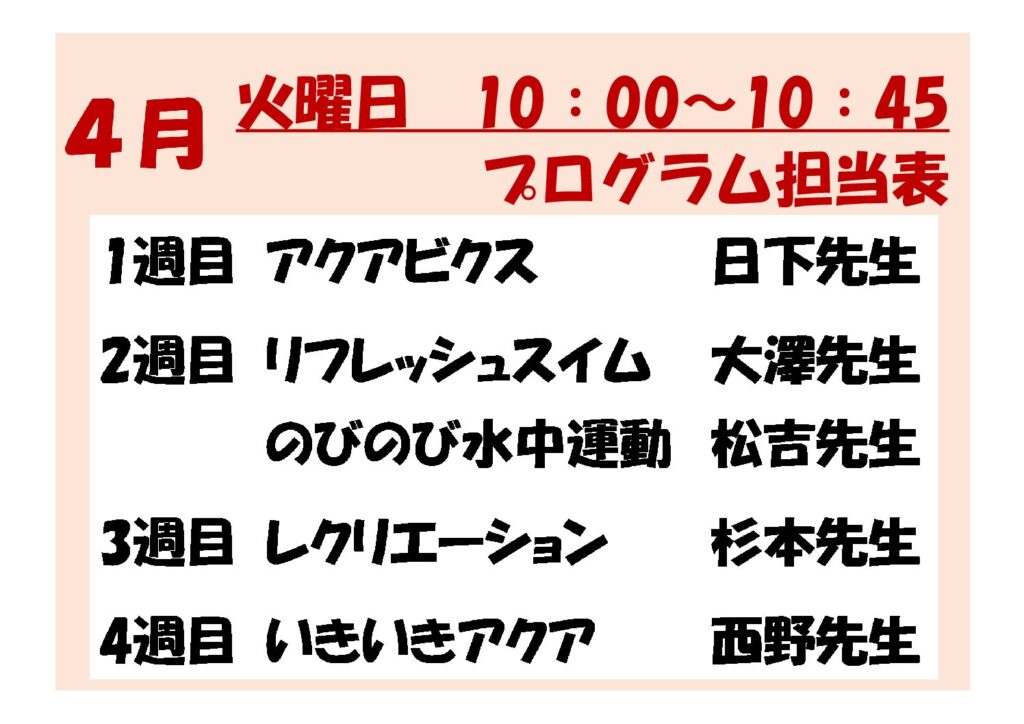 はつらつウォーターエクササイズ★★☆(やや多め)