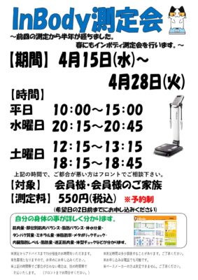 インボディ測定会のお知らせ💪